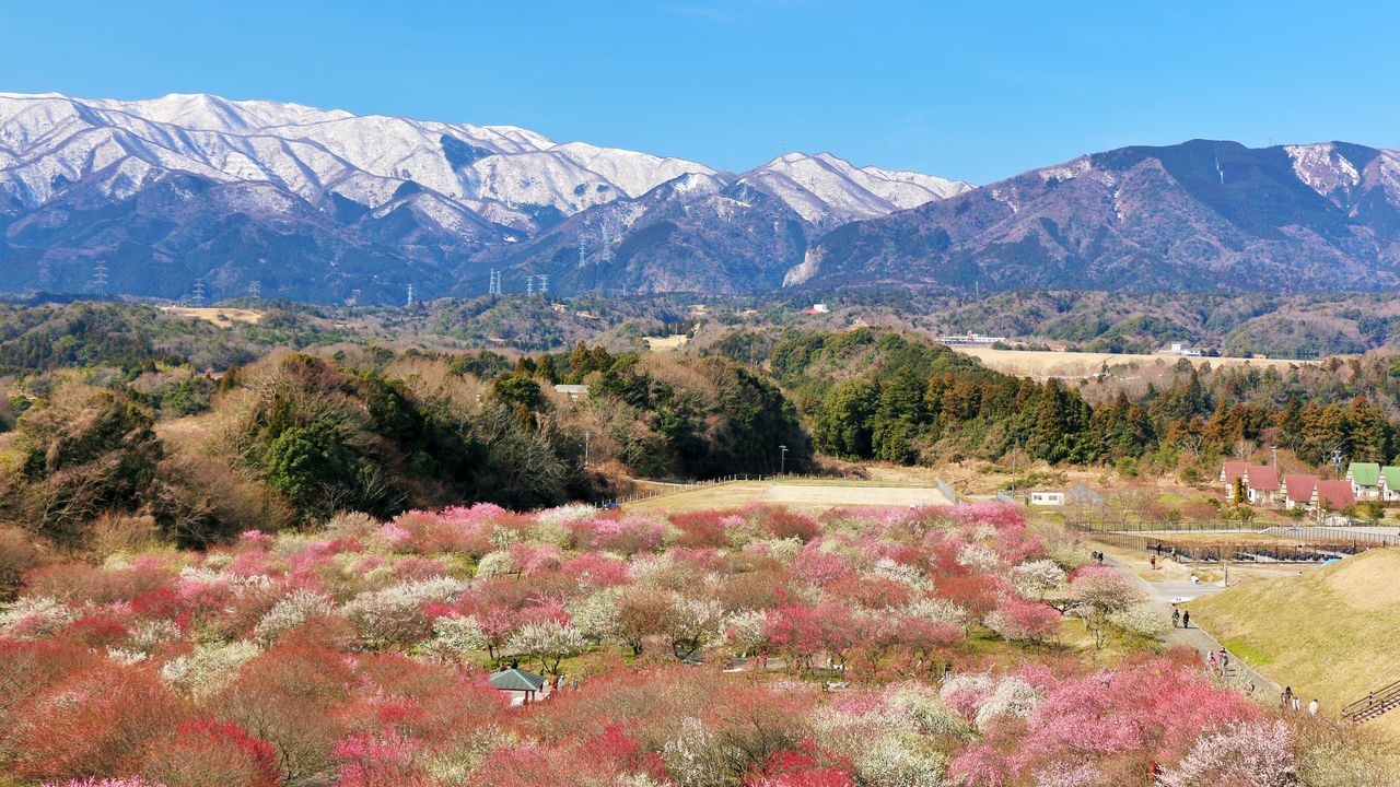 Фотография к заголовку: Парк Инабэ байрин и горная цепь Судзука в префектуре Миэ (PIXTA)