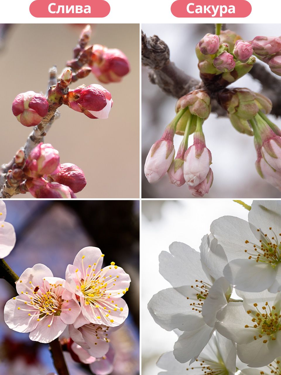 Как отличить цветы сливы от сакуры