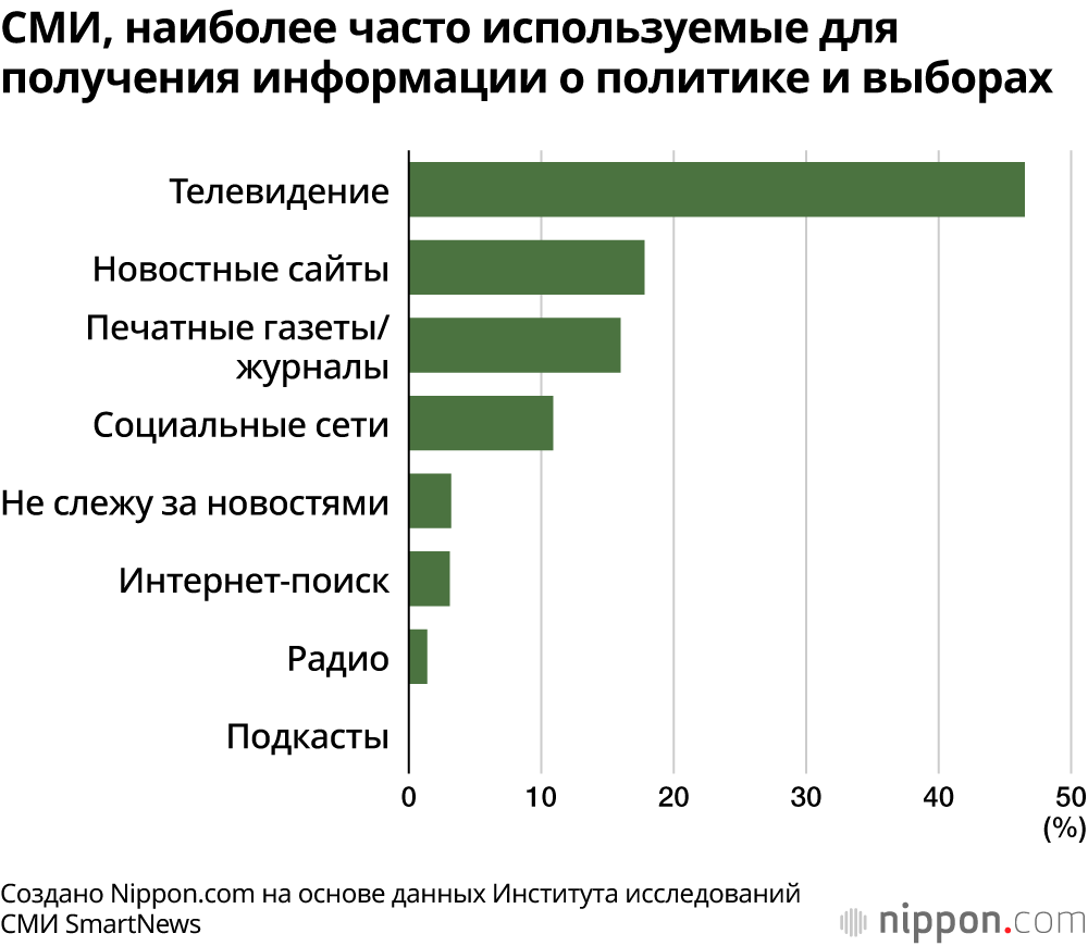 Опрос показал, что большинство японских избирателей узнают новости о выборах по телевидению