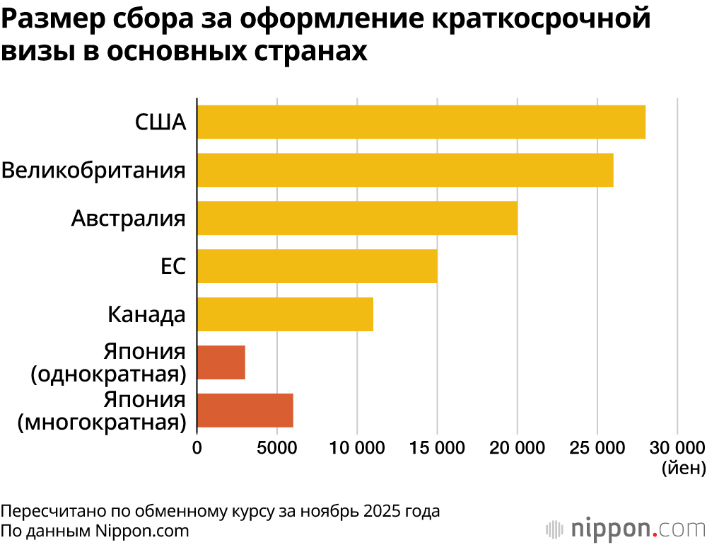 Правительство также намерено в течение 2026 финансового года значительно повысить сборы за оформление виз для въезда в Японию. В настоящее время пошлина за японскую визу составляет 3000 йен за однократную (single) и 6000 йен за многократную (multi) визу, и эти тарифы не пересматривались уже более 40 лет.