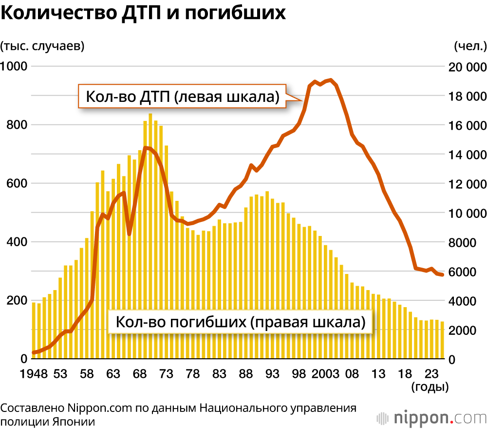 - В Японии с каждым годом в ДТП гибнет всё меньше людей: рекорды минимума погибших обновляются пятый год подряд