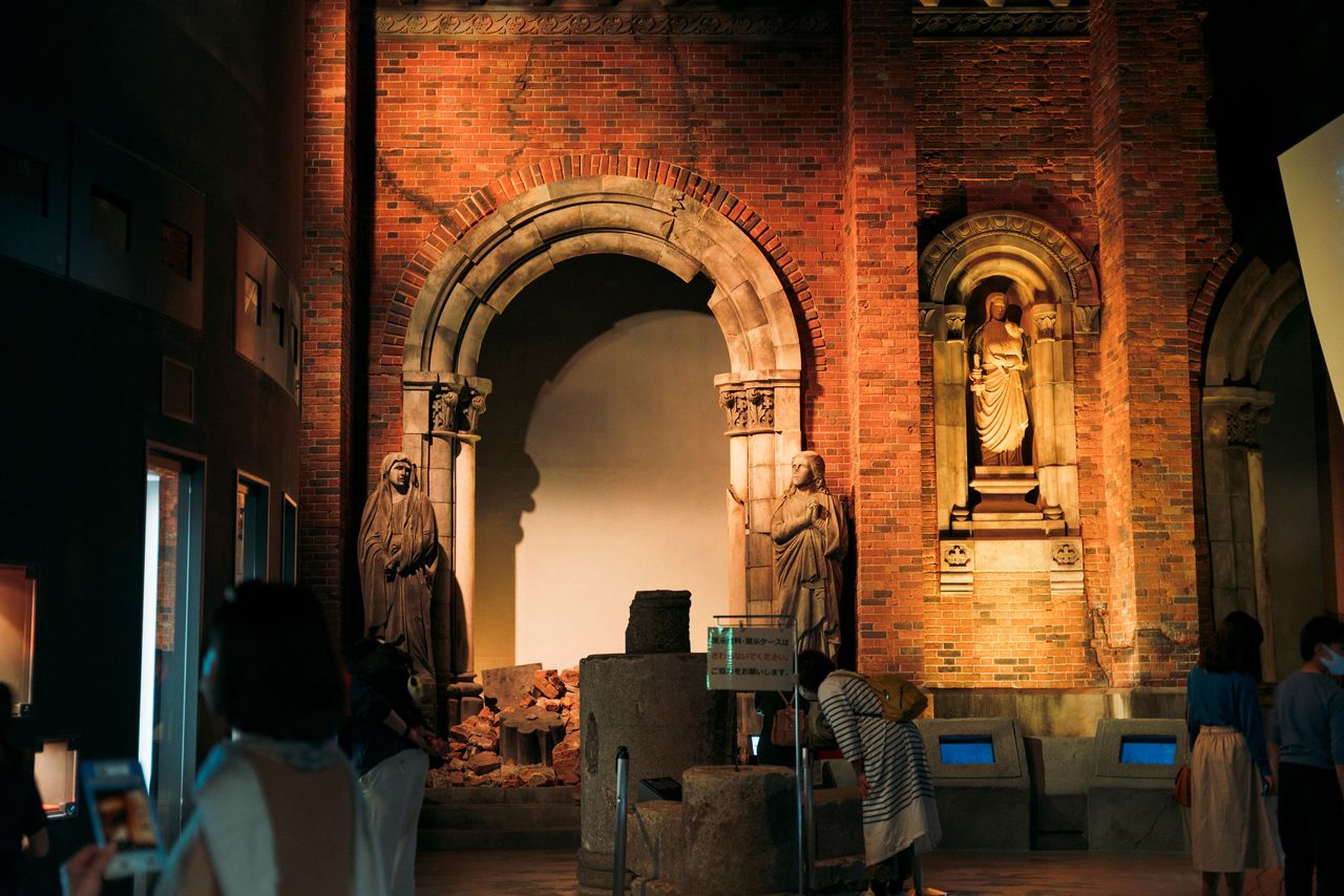 Реконструкция боковой стены собора Ураками, разрушенного взрывом, в Музее атомной бомбардировки Нагасаки (© Администрация города Нагасаки)