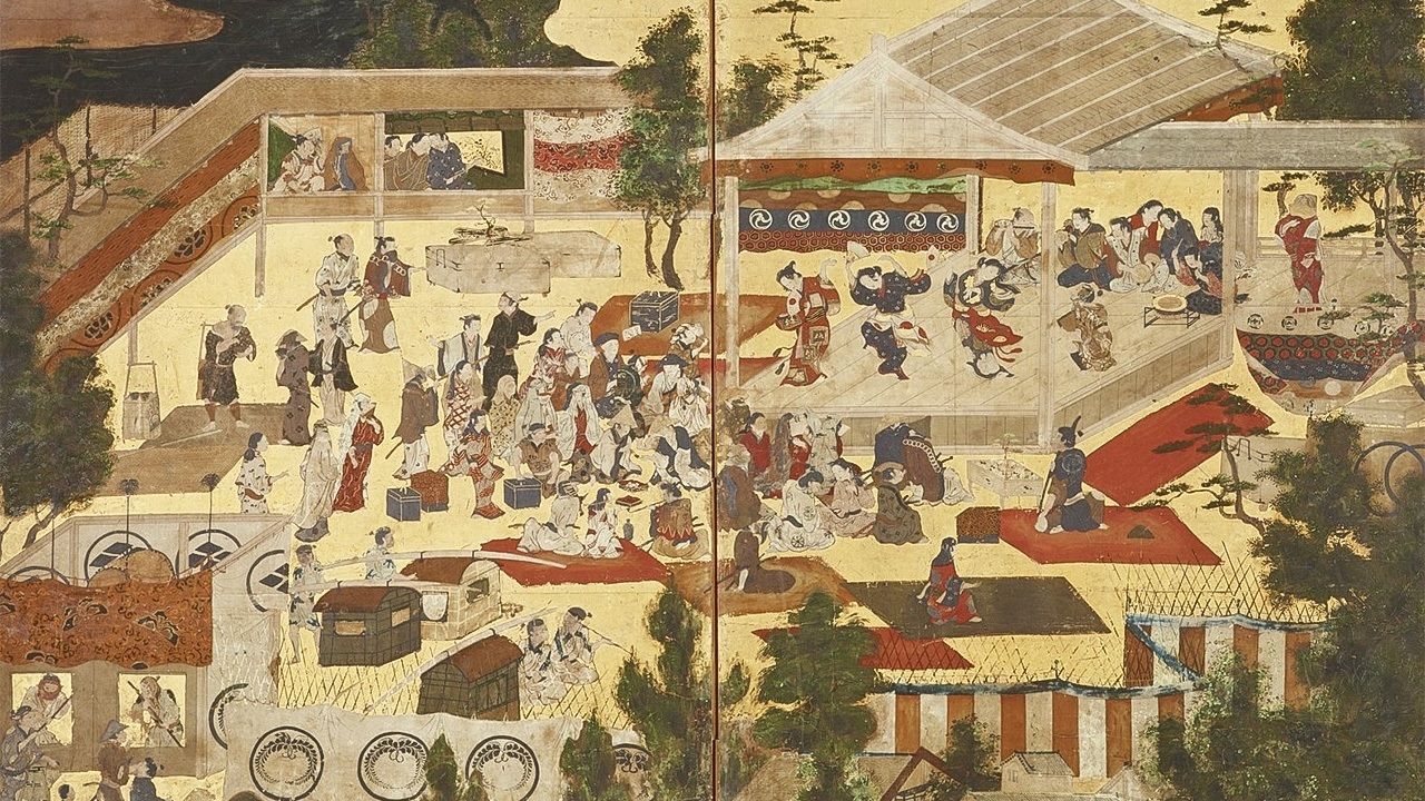 На нескольких картинах, созданных в начале периода Эдо, изображены оживлённые толпы, развлекающиеся у реки Камогава в квартале Сидзё Каварамати в Киото. Заметно, что театры, расположенные вдоль реки, чётко обозначены башнями ягура у входа, которые показывают, что владельцы получили официальное разрешение от властей.