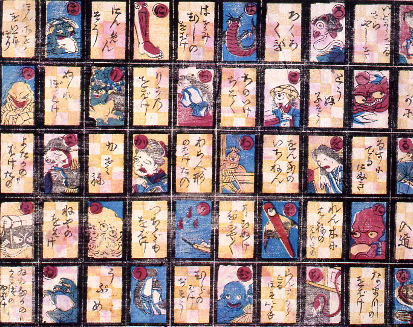 «Весёлое путешествие с монстрами» (Бакэмоно мавари вараигуса), игра сугороку на тему монстров; на каждом поле нарисован один тип ёкай, она также служила своеобразной «энциклопедией ёкай» (Исторический музей префектуры Хёго)