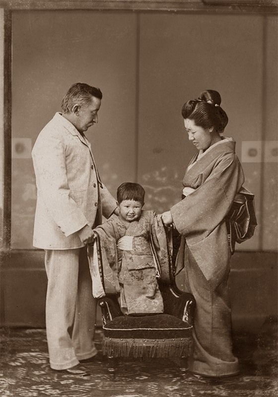 Лафкадио Херн (слева) с семьёй в Кобэ (© Мемориальный музей Лафкадио Херна)