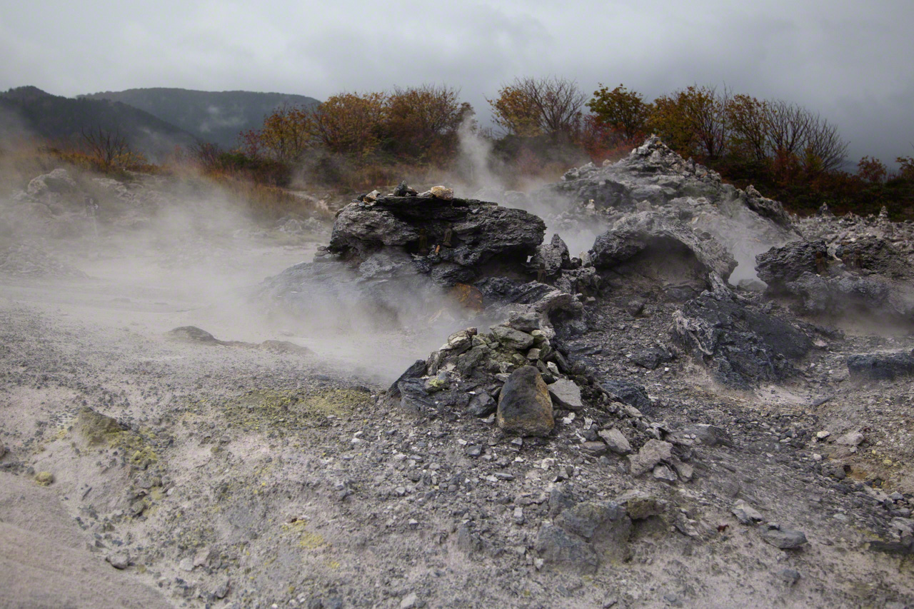 Фотография к заголовку: Скалистая местность, напоминающая ад, на священной «Горе Страха» Осорэдзан
