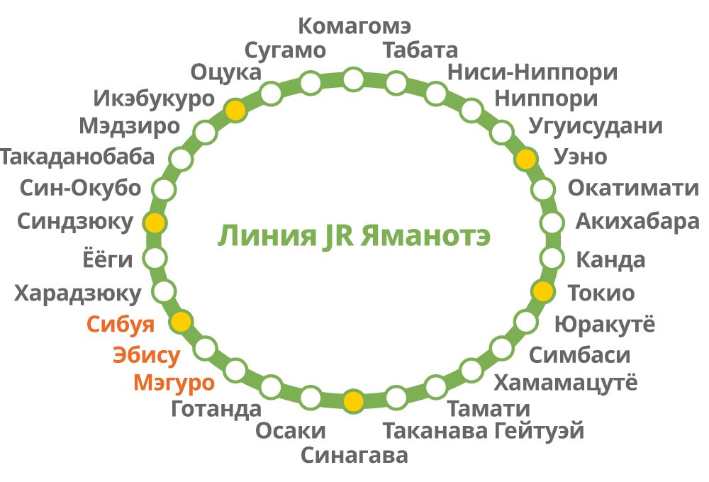 Как это часто случается, линии Яманотэ разделяет Токио на два совершенно непохожих друг на друга мира. Например, внешняя сторона между Эбису и Мэгуро – это коммерческий район с множеством недорогих магазинов и ресторанов, в то время как внутренняя сторона – это зона тихого достатка, где богатство не бросается в глаза.