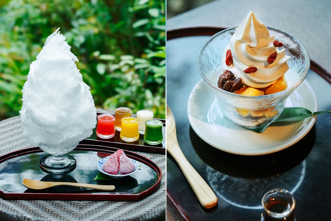 Какигоори из натурального льда (слева) и Варабимоти Анмицу (© Кавагути Ёко)