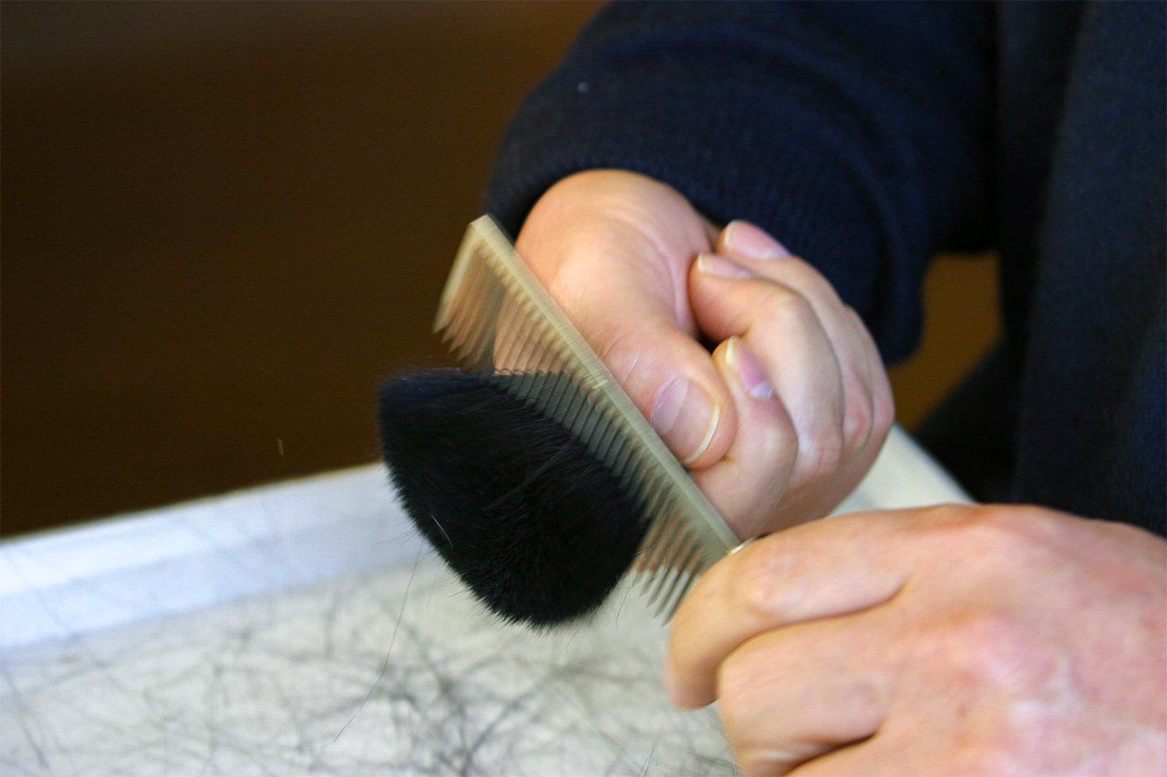 Чтобы придать головке кисти идеальную форму, мастер многократно расчёсывает волоски (©«Хакуходо»)
