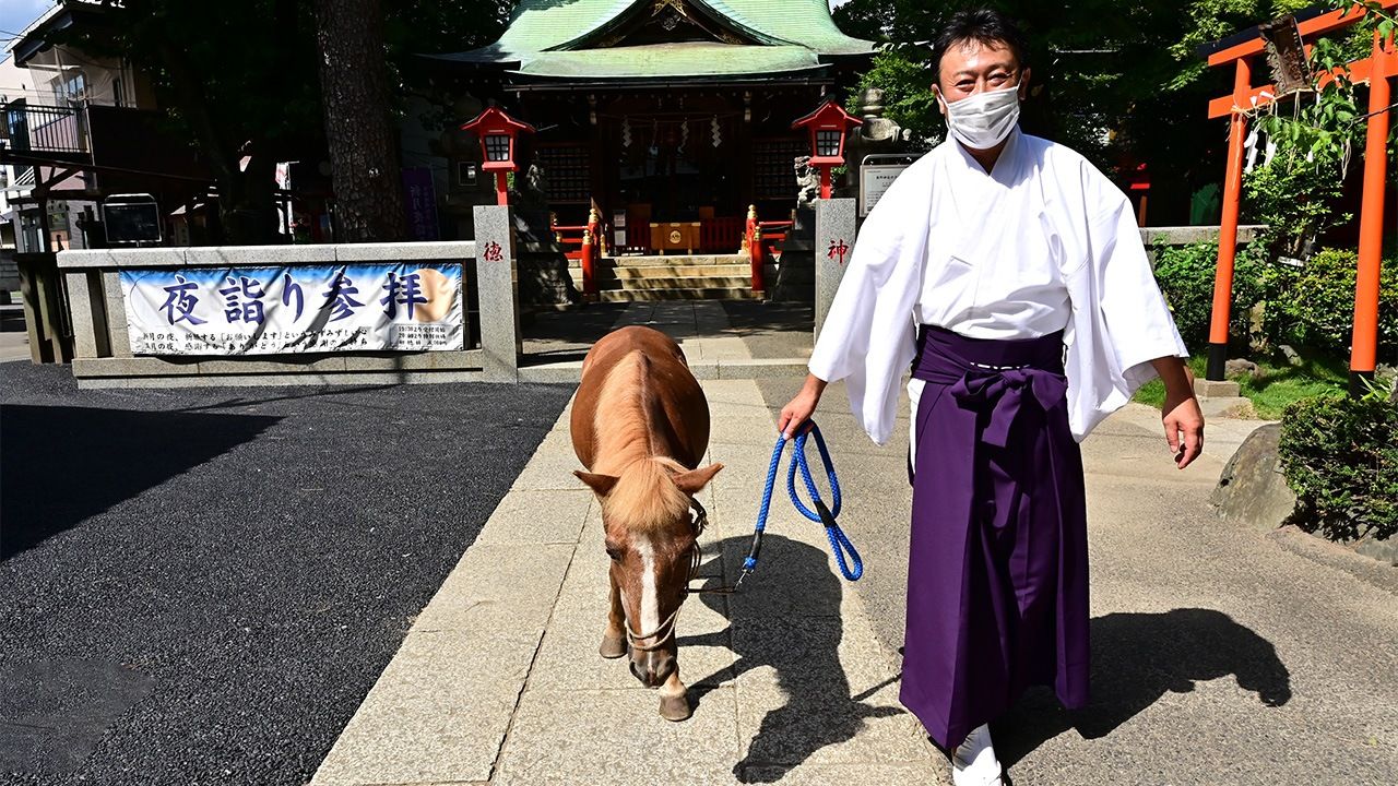 В 2011 году в святилище появилась мини-пони Тёко, а в 2019 году – японская пони Банира, и теперь они втроём живут насыщенной жизнью в качестве детских товарищей по играм, верховых животных богов и приветствуют посетителей святилища.