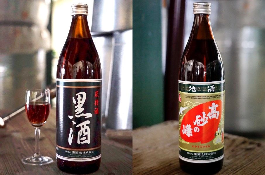 Этикетки «Куродзакэ» (слева) и «Такасаго-но минэ», марки акумотидзакэ, выпускаемые компанией «Хигаси сюдзо», отражают более чем 1200-летнюю японскую традицию производства куроки (© Укита Ясуюки)