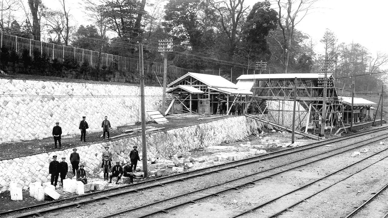 Фотография к заголовку: Строительство станции Угуисудани (около 1912 г.; коллекция Железнодорожного музея)
