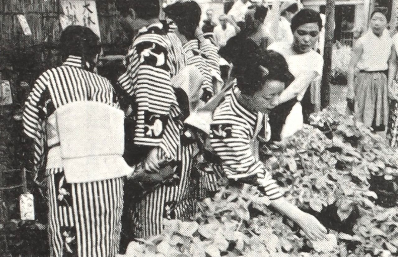 Рынок вьюнков в 1950-е годы («Знаменитые места и культурные ценности округа Тайто», коллекция Национальной парламентской библиотеки)