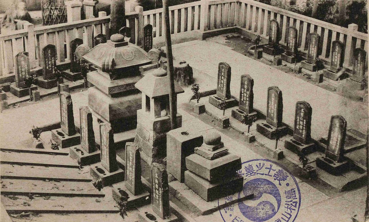 Открытка с изображением могил 47 ронинов (собрание специальных коллекций Центральной библиотеки Токио)