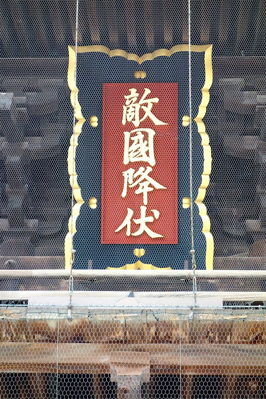 Мемориальная доска в святилище Хакодзаки с надписью «Поражение вражеской страны» (фото автора)