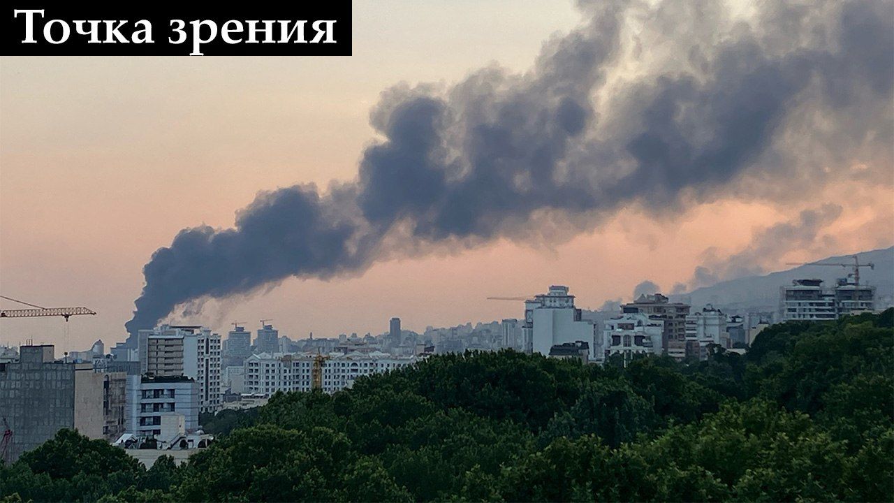 Фотография к заголовку: дым над зданием иранского государственного телевидения после израильской атаки. 16 июня 2025 года, Тегеран, Иран (AFP/Jiji)