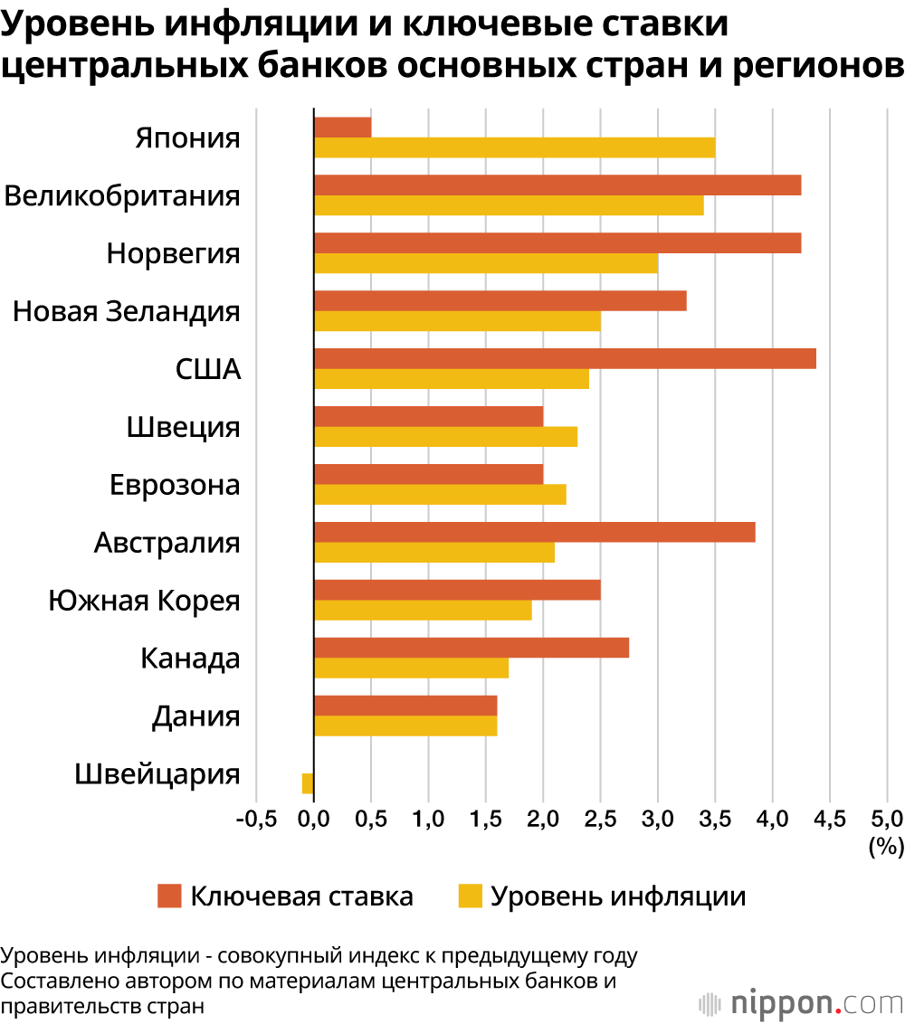 В результате реальная ключевая ставка, полученная вычитанием уровня инфляции из ключевой ставки, находится на подавляюще низком уровне по сравнению с зарубежными странами. Это можно назвать основным фактором, препятствующим корректировке чрезмерного ослабления йены. Процентные ставки по депозитам не поспевают за инфляцией, и реальная стоимость вкладов снижается, что облегчает отток средств за границу. Ослабление йены привело к резкому росту цен на продукты питания, бензин и другие предметы первой необходимости. Другими словами, последствия крупномасштабного выпуска государственных облигаций уже начали причинять страдания людям в виде ослабления йены и роста цен.
