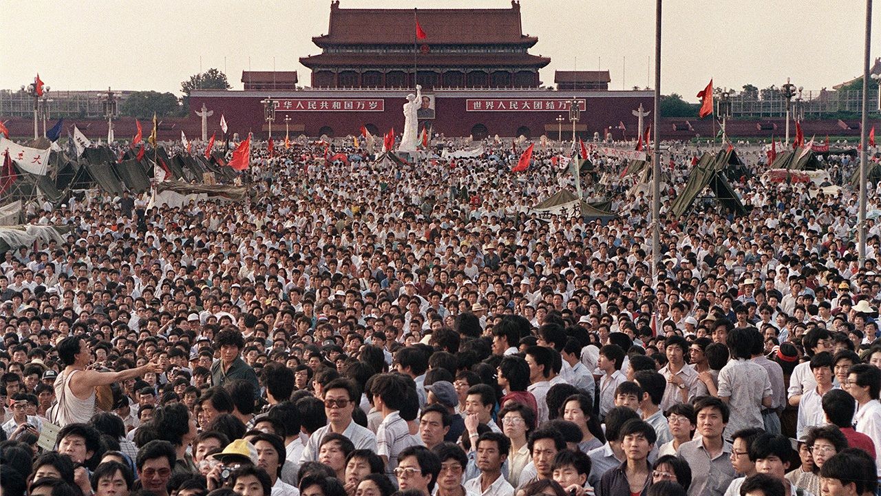 Фотография к заголовку: Вид площади Тяньаньмэнь в Пекине 2 июня 1989 года непосредственно перед вооруженным вмешательством сил безопасности Китая (© AFP/Jiji Press)