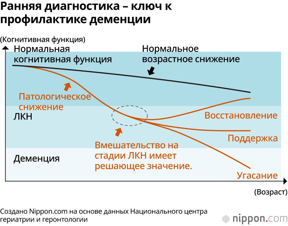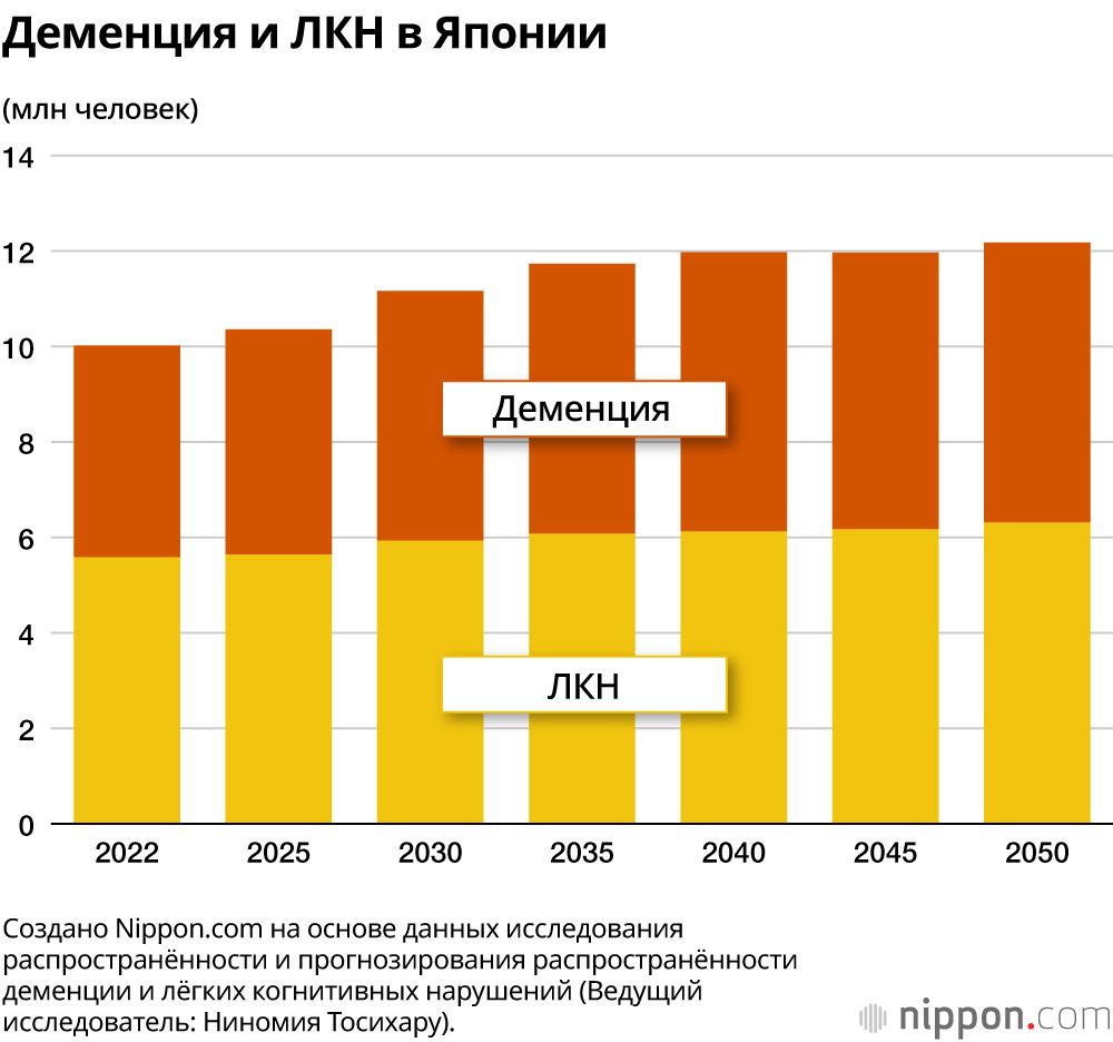 Согласно исследованию Ниномии Тосихару, профессора Университета Кюсю, по состоянию на 2025 год 4,7 миллиона жителей Японии страдают деменцией, а ещё 5,6 миллиона страдают от лёгких когнитивных нарушений (ЛКН). В общей сложности эта группа составляет более 10 миллионов человек и её рост связан с тем, что поколению бэби-бумеров, тем, кто родился после окончания Второй мировой войны, сейчас уже за 75.