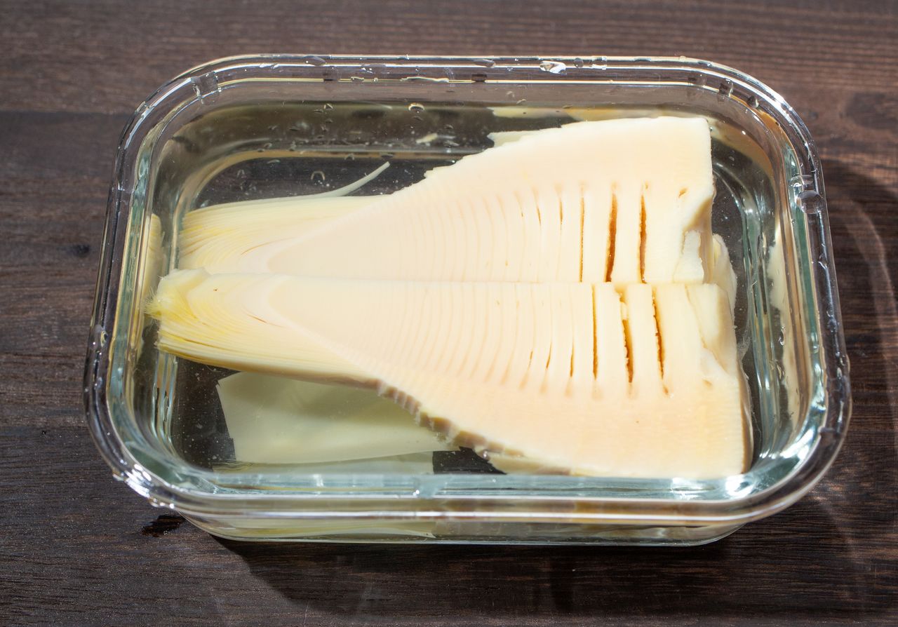 Чем больше времени проходит после выкапывания такэноко, тем более вяжущими и горькими они становятся, поэтому для сохранения лучшего вкуса вяжущий вкус нужно удалить сражу же после покупки. Для этого снимают внешние два-три слоя и срезают самые жёсткие части у основания и на кончике. После надреза на оболочке такэноко помещают в кастрюлю, заливают водой так, чтобы она полностью покрывала побеги, добавляют рисовые отруби и острый перец, а затем ставят на огонь. Варить нужно от тридцати минут до часа, в зависимости от количества побегов. Затем огонь выключают и оставляют такэноко остывать в кастрюле.