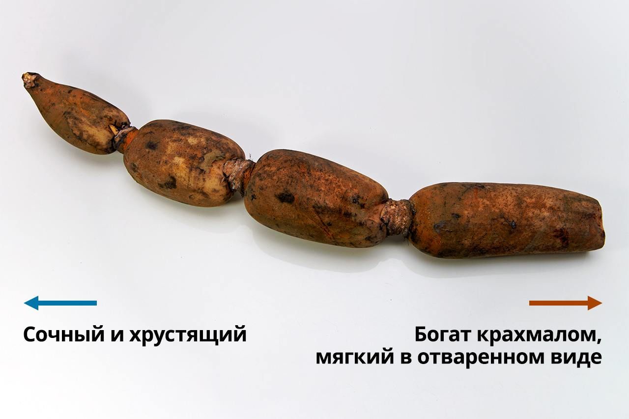 В супермаркетах корень лотоса продают нарезанным на удобные порции, но изначально он состоит из нескольких сегментов, соединённых между собой. Наиболее крупный исходный сегмент богат грубой клетчаткой и крахмалом, поэтому его обычно варят или натирают на тёрке. Средние сегменты многофункциональны – их можно варить, жарить или тушить. Крайний сегмент, наиболее близкий к почке, – самый молодой. Он состоит из нежной клетчатки и отличается хрустящей лёгкой текстурой. Его обычно используют для приготовления кимпира и маринадов, добавляют в салаты.