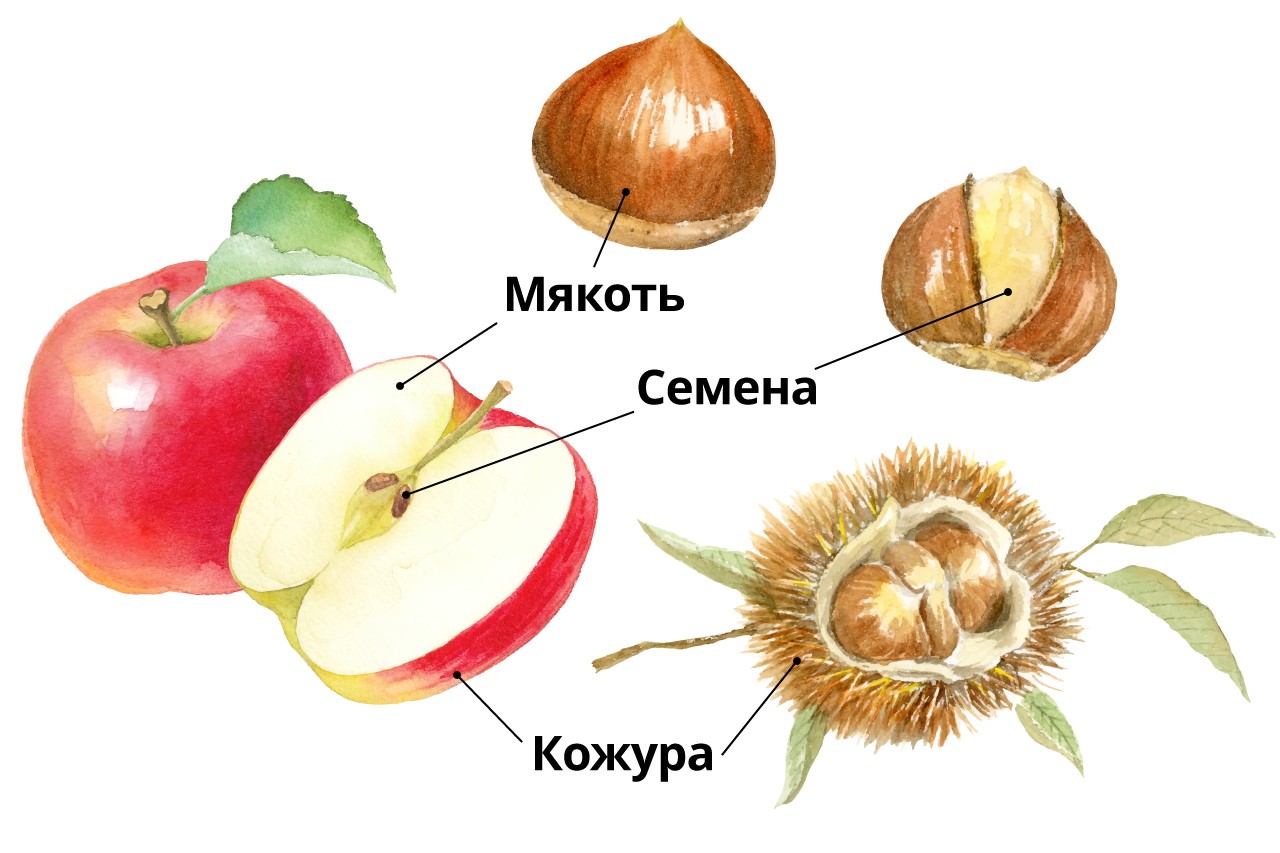 Следует отметить, что колючая кожура каштана – это оболочка плода, а мякоти плода соответствует твёрдая скорлупа (оникава), то есть съедобными являются не сами плоды, а семена.