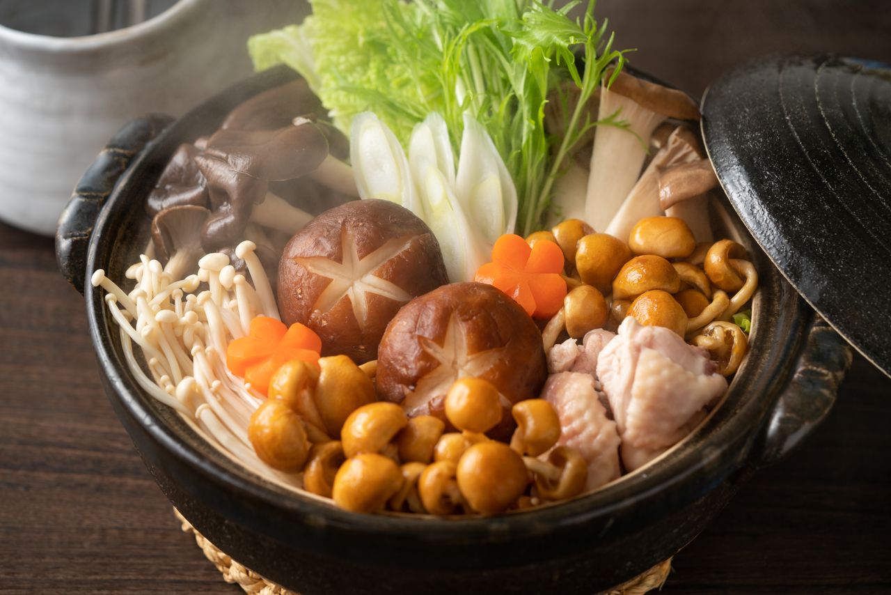 Свежие грибы сиитакэ – обычный ингредиент набэмоно – например, ёсэнабэ, мидзутаки и сукияки. На шляпках делают фигурные надрезы – не только для красоты, но и для более равномерного приготовления и равномерного распределения умами по всему блюду.