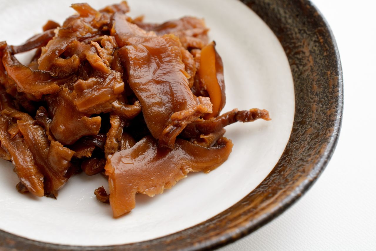 Сушёные сиитакэ томят в сладко-остром соусе из соевого соуса и сахара. Их можно подавать в качестве гарнира к рису, но они также популярны в качестве добавки к суси-роллам и лапше сомэн.