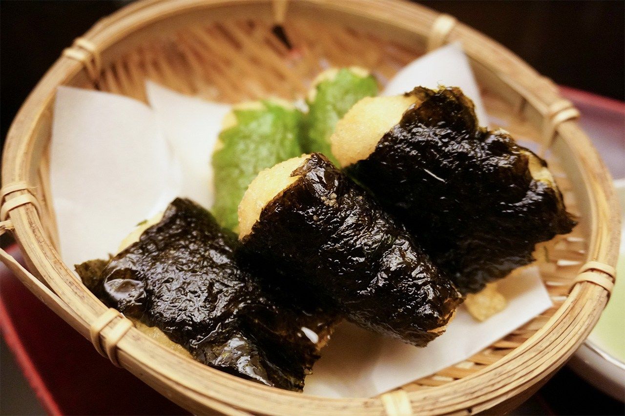 Если завернуть ингредиенты в лист нори и обжарить во фритюре, получится исобэ-агэ – блюдо с насыщенным ароматом моря. В качестве начинки можно использовать ямс, куриные фрикадельки и другие продукты.