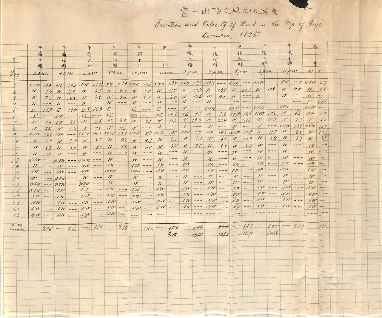 Немецкий профессор Эрвин Книппинг, который приложил немало трудов к ежедневному составлению, печати и распространению синоптических карт, в 1887 году тоже занимался метеорологическими наблюдениями на вершине Фудзи. Под руководством нанятых на госслужбу иностранцев к наблюдениям на вершине Фудзи в форме кратковременного пребывания в летний период стали привлекать и японцев.