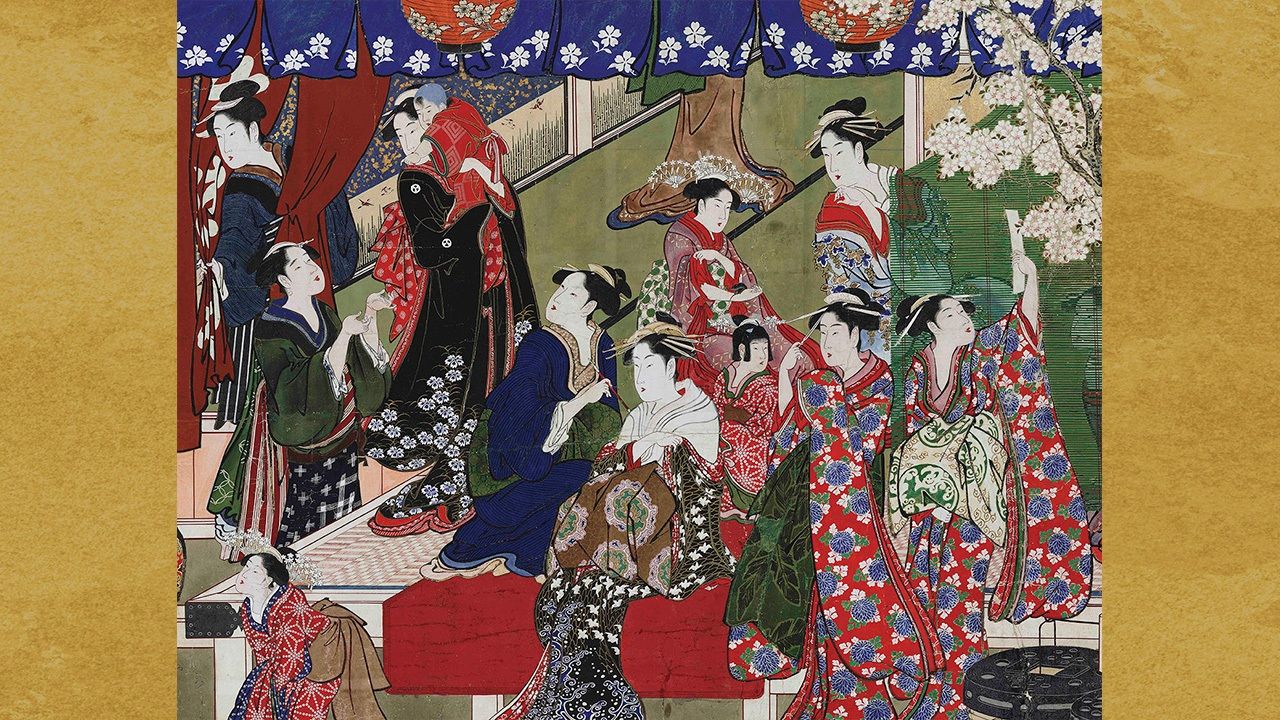 Фотография к заголовку: Китагава Утамаро, «Цветущие сакуры в Ёсиваре» (Ёсивара-но хана, фрагмент), ок. 1793 г. (с разрешения Художественного музея Уодсворта Атенеум, Хартфорд, Фонд Эллы Гэллап Самнер и Мэри Кэтлин Самнер)
