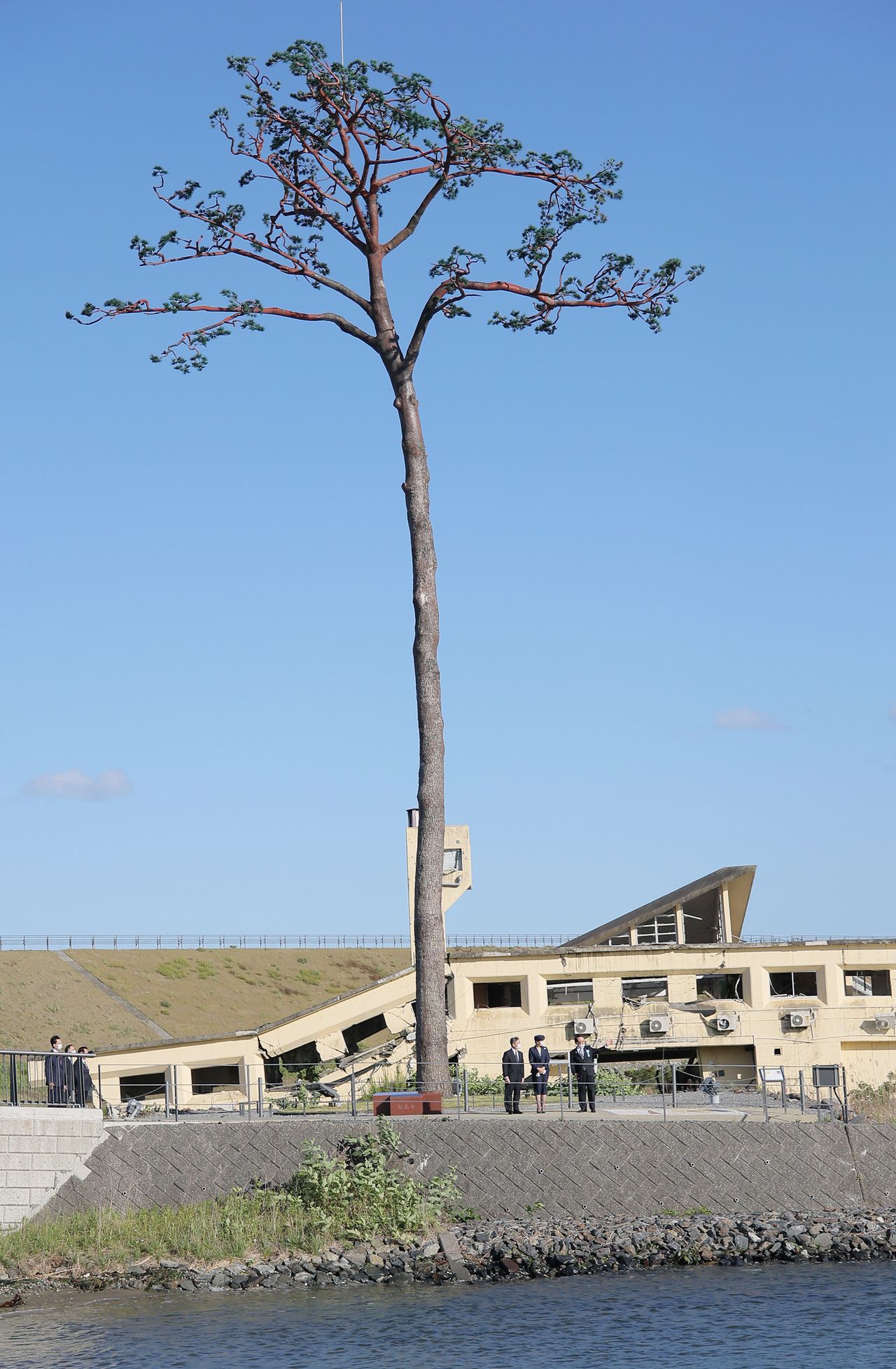 Императорская чета осматривает «чудесную сосну», 3 июня 2023 г., город Рикудзэнтаката, преф. Иватэ (© Jiji Press)