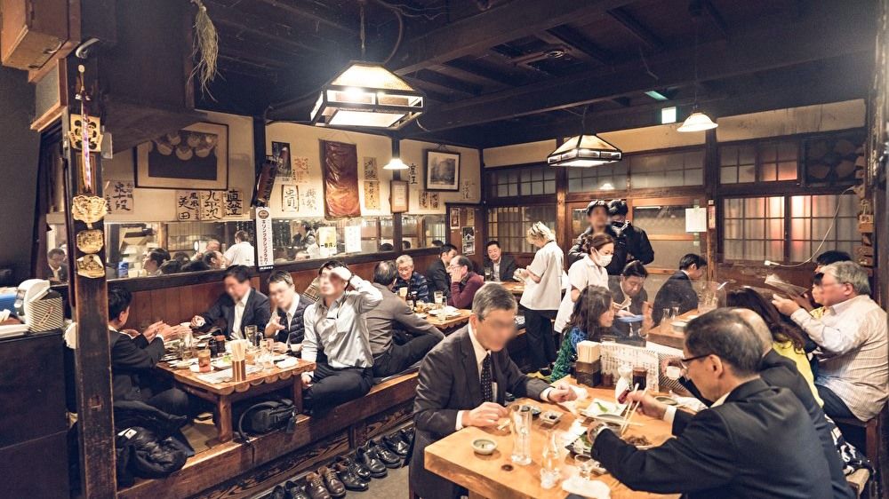 Фотография к заголовку: Посетители заполняют интерьер столетней идзакая «Мимасуя» (© Мацудзоно Тамон)