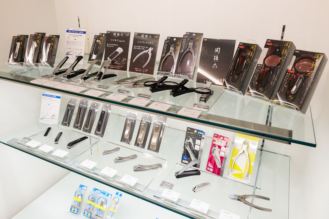 В выставочном зале головного офиса «КАЙ» в Токио представлены книпсеры для ногтей, ножи, бритвы и другие изделия компании
