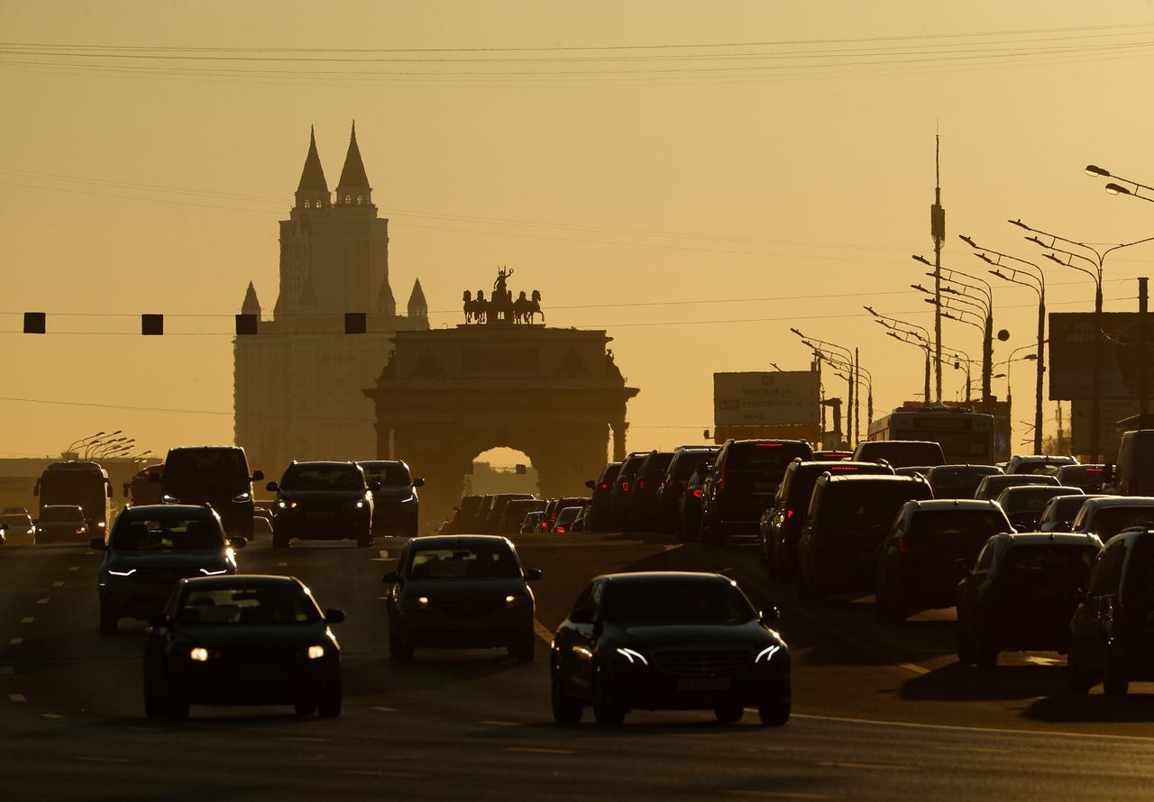 Cars drive along a road during sunset in Moscow, Russia March 11, 2021. REUTERS/Evgenia Novozhenina