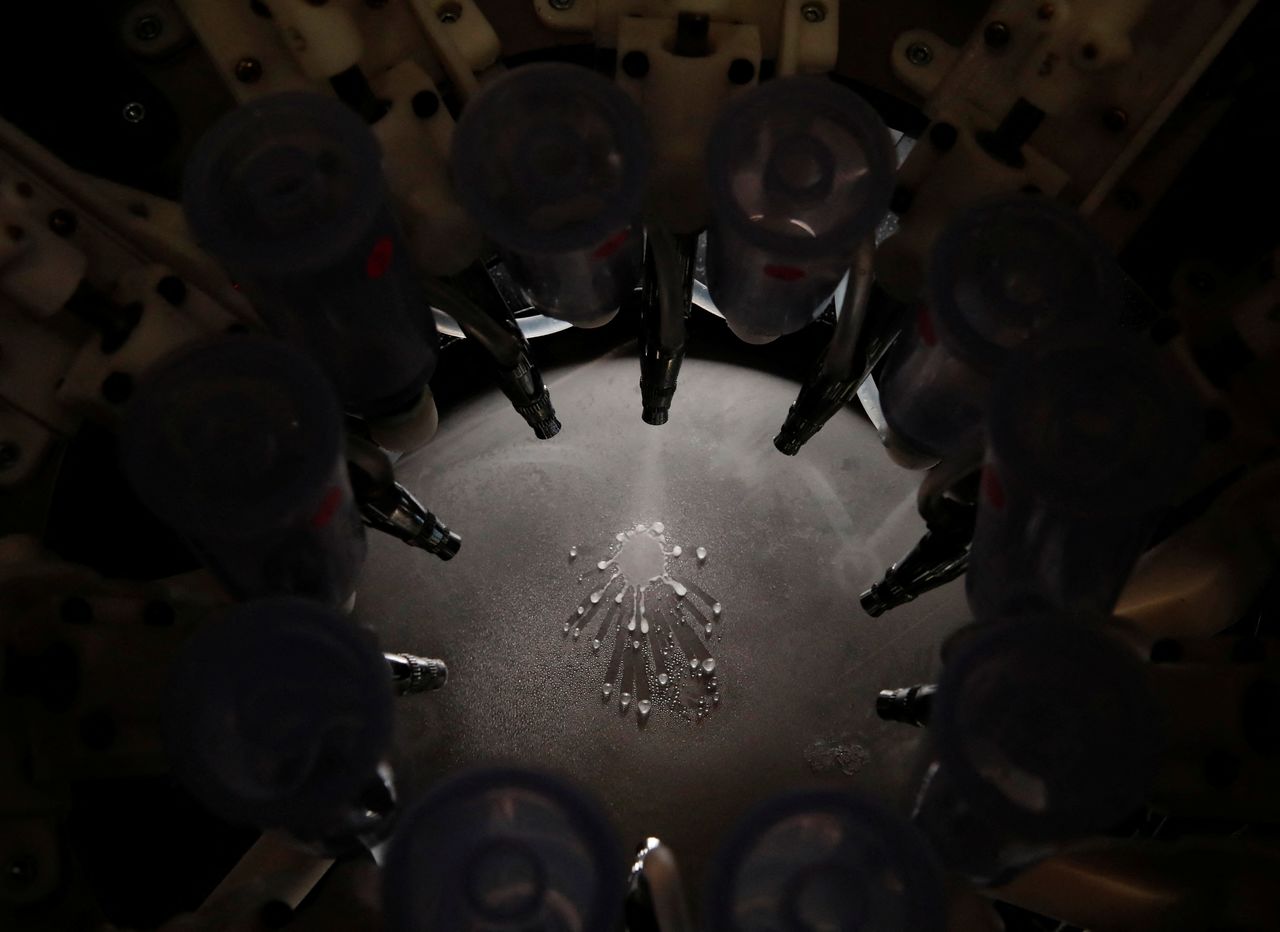 Контейнер Taste the TV (TTTV), прототип телеэкрана, который может имитировать вкус различных продуктов, распыляет вкусовые эссенции во время его демонстрации в Университете Мэйдзи в Токио, Япония, 22 декабря 2021 г. REUTERS / Kim Kyung-Hoon