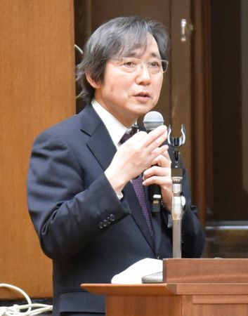 Профессор Института медицинских наук Токийского университета Иноуэ Дзюнъитиро объявляет на пресс-конференции, что средство для лечения острого панкреатита, возможно, способно предотвращать инфицирование коронавирусом нового типа; утро 18 марта, Токио, район Бункё