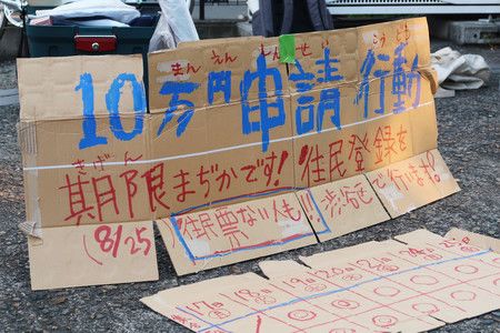 63-летний мужчина, который пришёл в парк в районе Сибуя в Токио, чтобы получить бесплатную еду от группы поддержки в ночь на 15 августа, сказал, что он смирился с мыслью о невозможности получения выплаты. Он живёт на улице около 25 лет, его прежняя регистрация уже аннулирована. Небольшой доход, который он получает от сбора пустых банок, уменьшился из-за последствий эпидемии коронавируса. При всех его проблемах он ощущает несправедливость, поскольку деньги должны были раздать всем.