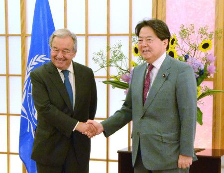 Токио, 8 августа (Jiji Press). Министр иностранных дел Японии Хаяси Ёсимаса и прибывший в понедельник Генеральный секретарь ООН Антониу Гутерриш согласились с важностью ослабления напряженности вокруг Тайваня и Украины.