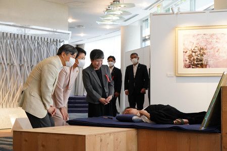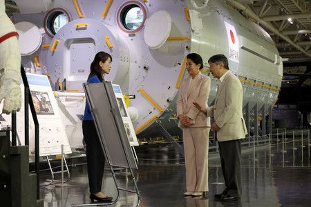 Астронавт Ямадзаки Наоко проинформировала их о японском экспериментальном модуле Kibo на Международной космической станции перед моделью этого модуля. Императрица спросила Ямадзаки о трудностях во время пребывания на МКС.
