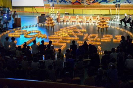 Местные ученики начальной и средней школы, а также другие исполнители спели две песни, в том числе одну с пожеланием восстановления после мощного землетрясения, которое произошло в районе Кобэ на западе Японии в 1995 году.