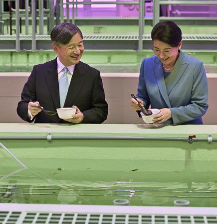 Кунисаки, префектура Оита, 9 ноября (Jiji Press). Император Японии Нарухито и императрица Масако посетили предприятие по выращиванию мальков рыб в городе Кунисаки, префектура Ойта.