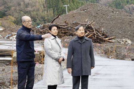 В рамках своей третьей поездки в этом году на полуостров Ното в центральной префектуре, чтобы поддержать людей, пострадавших от мощного землетрясения магнитудой 7,6 балла 1 января и проливных дождей в сентябре, императорская чета посетила район Футэгава-мати в Вадзиме, прибыв в аэропорт Ното на борту специального самолета незадолго до 11:30 утра.