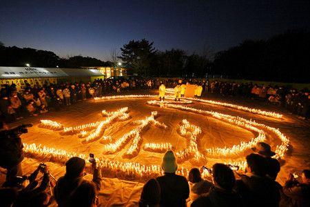В память о жертвах землетрясения 30 лет назад в Кобе зажгли 6434 свечи