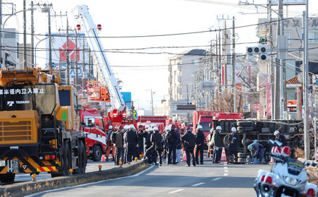Ясио, преф. Сайтама, 29 января (Jiji Press) -- 29 января во второй половине дня продолжаются попытки спасти 74-летнего водителя грузовика, оказавшегося в провале, образовавшемся в результате обрушения дороги в префектуре Сайтама, недалеко от Токио, произошедшего 28 января.