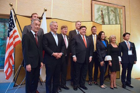 На приеме присутствовали губернатор Иллинойса Дж. Б. Прицкер и губернатор Мичигана Гретхен Уитмер, которые рассматриваются как потенциальные кандидаты от Демократической партии на пост президента США, а также высокопоставленные должностные лица Министерства торговли США и руководители японских компаний.