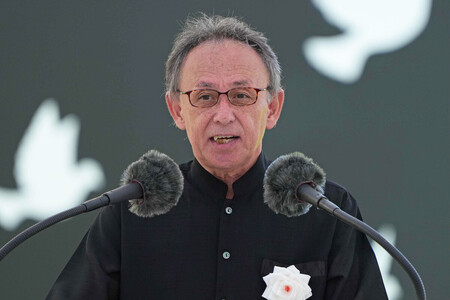 Губернатор выразил намерение работать над созданием международного института исследований мира, сохранением и использованием военных памятников Окинавы, обращениями к международному сообществу в сотрудничестве с Хиросимой и Нагасаки по вопросам ядерного разоружения и ликвидации ядерного оружия. Назвав «80 лет после войны лишь промежуточным этапом», он подчеркнул: «Мы будем выполнять роль содействия достижению вечного мира совместно с международным сообществом».