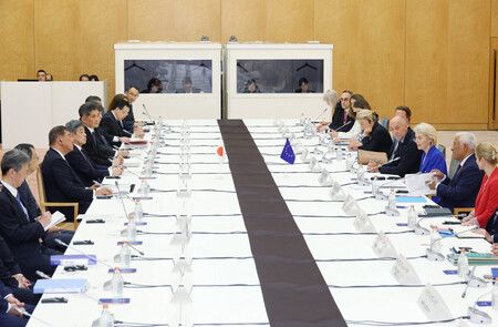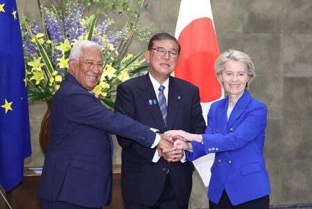 Токио, 23 июля (Jiji Press). Премьер-министр Японии Исиба Сигэру, председатель Европейского совета Антонио Коста и председатель Европейской комиссии Урсула фон дер Ляйен в среду договорились об укреплении сотрудничества в области обороны и экономической безопасности.
