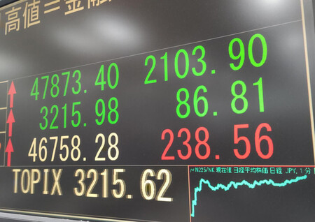 Токио, 6 октября (Jiji Press) – в понедельник на токийском фондовом рынке индекс Nikkei 225 резко вырос, превысив во второй половине торгов показатель предыдущей пятницы более чем на 2200 йен. Широкий спектр акций активно скупался после избрания новым председателем Либерально-демократической партии бывшего министра экономической безопасности Такаити Санаэ, выступающей за активную фискальную политику. Индекс Nikkei обновил исторический максимум во время торговой сессии, приблизившись к отметке 48 000 йен. К концу утренней сессии он вырос на 2065,86 йен, составив 47 835,36 йен.