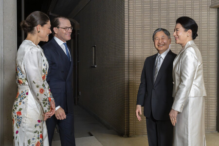 Японская императорская чета встретила наследную принцессу Викторию и её мужа у входа во дворец около 7 часов вечера. Они пожали друг другу руки, улыбались и потом побеседовали.